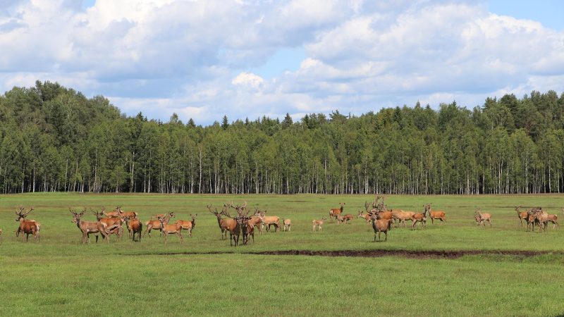 Уже несколько лет в большом огороженном лесном массиве на территории национального парка формируется стадо диких животных – оленей, ланей. Здесь же поселились лоси, косули, бобры.