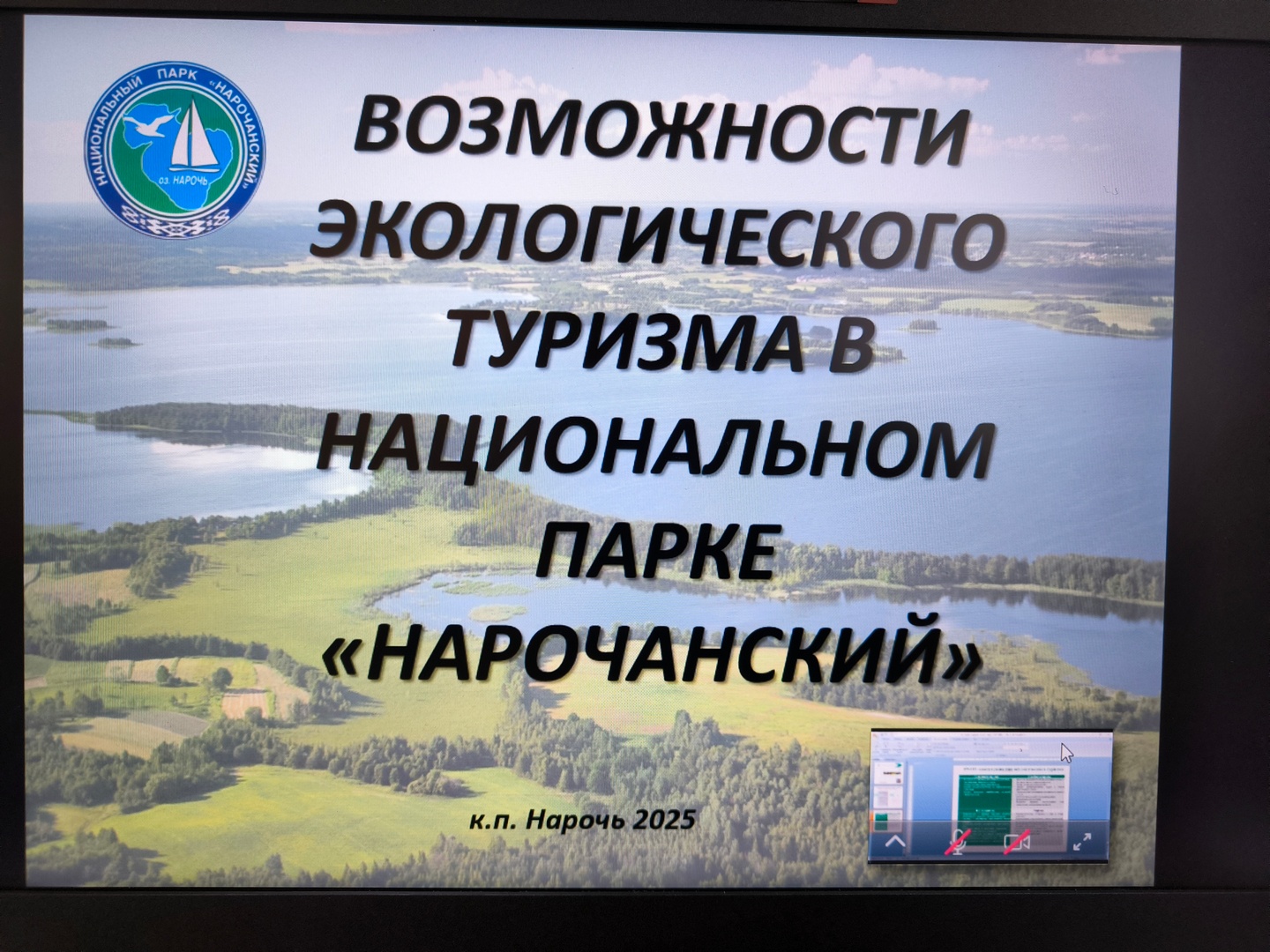 С докладом о «Возможностях экологического туризма в Национальном парке «Нарочанский» выступила научный сотрудник Послед Ольга Сергеевна, где познакомила участников с основными и самыми популярными объектами экологического туризма, а также с особенностями организации научного и научно-популярного туризма.